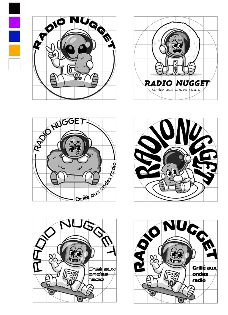 Ensemble, nous avons opté pour une palette de couleurs vives, en lien avec l'espace. Une touche d'orange s'est avérée nécessaire pour rappeler le nugget.