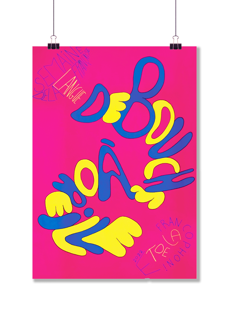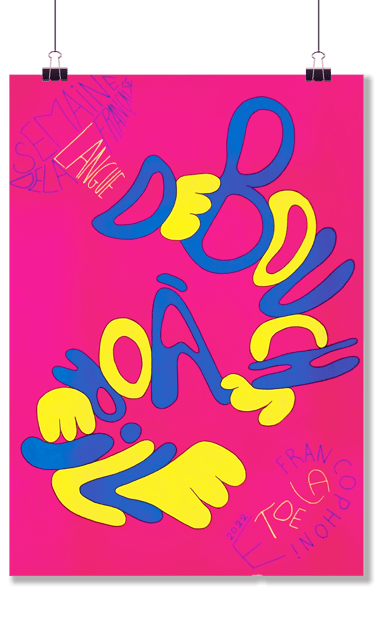 Chaque année, la Semaine de la langue française et de la francophonie célèbre la diversité linguistique à travers le monde. En 2022, le thème choisi, intitulé « Ça (d)étonne ! », invitait à redécouvrir le pouvoir des mots pour créer de l’étonnement, surprendre et amuser. Pour cet événement, 26 graphistes ont été invités à concevoir des affiches originales en lien avec cette thématique. Le ministère a également autorisé des installations éphémères dans les espaces publics pour promouvoir l’événement.