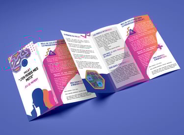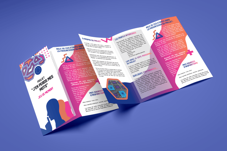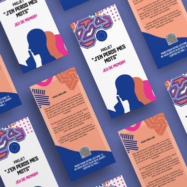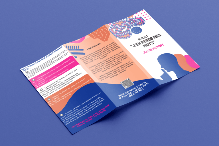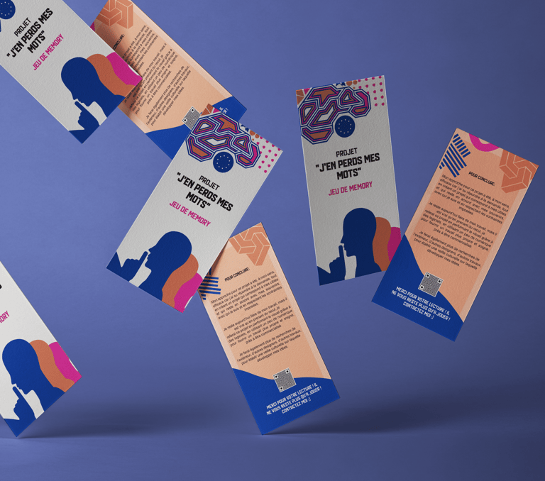 Ce dépliant présente le projet « J'en perds mes mots », un jeu de cartes de memory anciennement réalisé. Il constitue une réflexion approfondie sur mes pratiques, incluant une analyse de la demande client, du processus créatif et du brief initial.